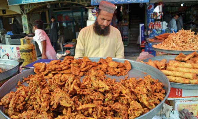 Seorang pedagang telah menjual pakora selama hampir enam puluh tahun berkata: “Warung saya adalah yang tertua di Islamabad. Kami menjual pakora cabai hijau, terong, kentang, dan sayuran campur.”